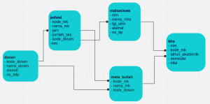 - 3NF: Normal tahap ketiga. Syarat yang ada dalam tahapan ini tidak adanya atribut non primary key yang bergantung pada non primary key lain atau tidak ada transitive functional dependency.
