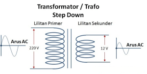 Transformator (Transformer) atau disingkat dengan Trafo yang digunakan untuk DC Power supply adalah Transformer jenis Step-down yang berfungsi untuk menurunkan tegangan listrik sesuai dengan kebutuhan komponen Elektronika yang terdapat pada rangkaian adaptor (DC Power Supply). Transformator bekerja berdasarkan prinsip Induksi elektromagnetik yang terdiri dari 2 bagian utama yang berbentuk lilitan yaitu lilitan Primer dan lilitan Sekunder. Lilitan Primer merupakan Input dari pada Transformator sedangkan Output-nya adalah pada lilitan sekunder. Meskipun tegangan telah diturunkan, Output dari Transformator masih berbentuk arus bolak-balik (arus AC) yang harus diproses selanjutnya.