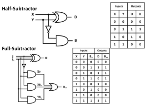 Sama seperti rangkaian penjumlahan biner, pada rangkaian pengurangan biner juga dapat dibagi menjadi half subtractor dan full subtractor. Rangkaian half subtractor merupakan dasar untuk menyusun atau membuat rangkaian full subtractor. Jadi untuk dapat memahami rangkaian full subtraktor, terlebih dahulu memahami prinsip dasar dari rangkaian half subtractor.